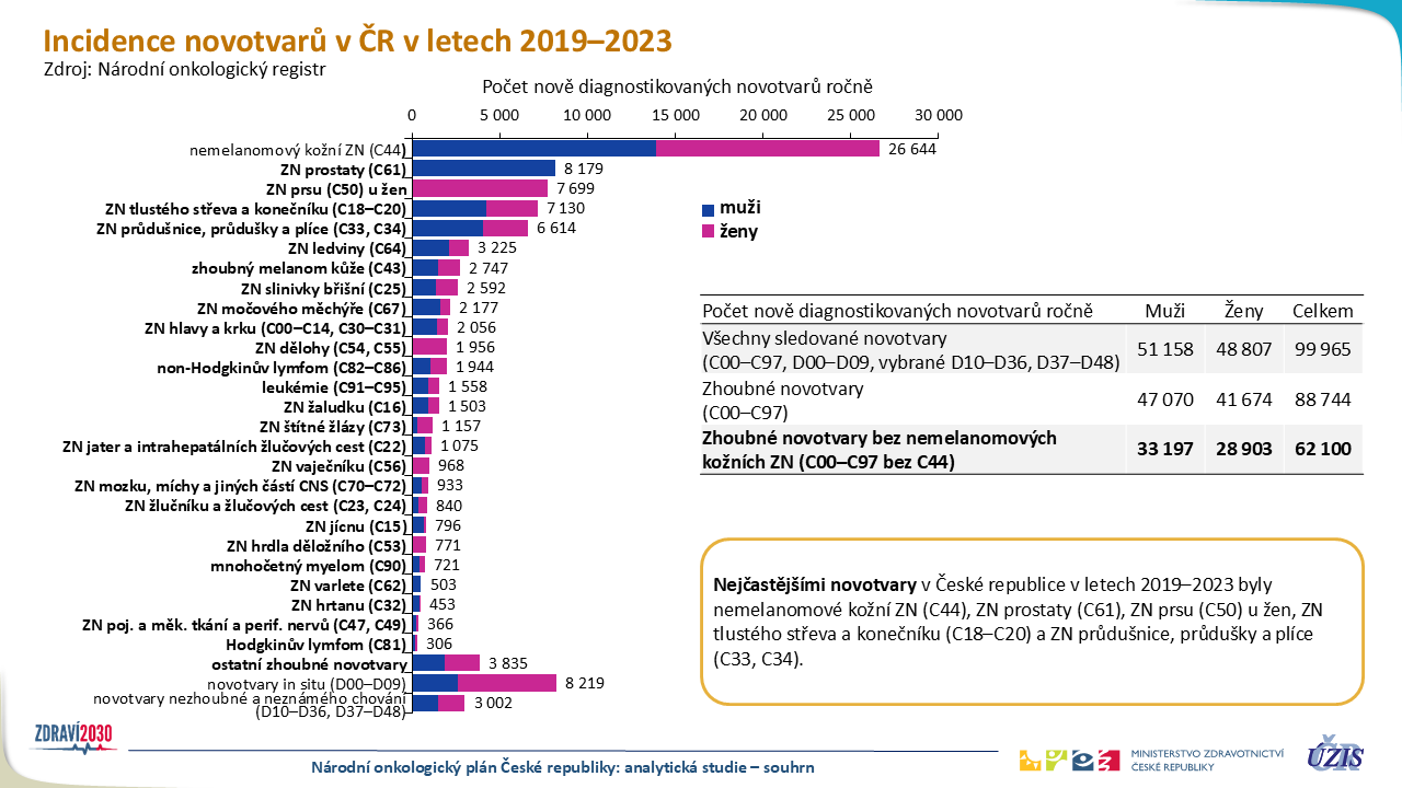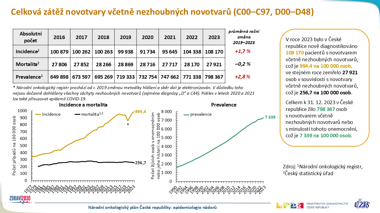 Celkový přehled epidemiologie nádorů v české populaci: zhoubné novotvary